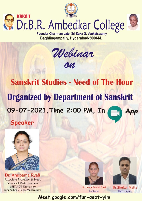 We are happy to inform everyone that our Head of Department of School of Vedic Sciences, Dr Anupama Ryali will be delivering a lecture on the topic “Sanskrit – The Need of the Hour” in a webinar hosted by Dr. B R Ambedkar College, Hyderabad.